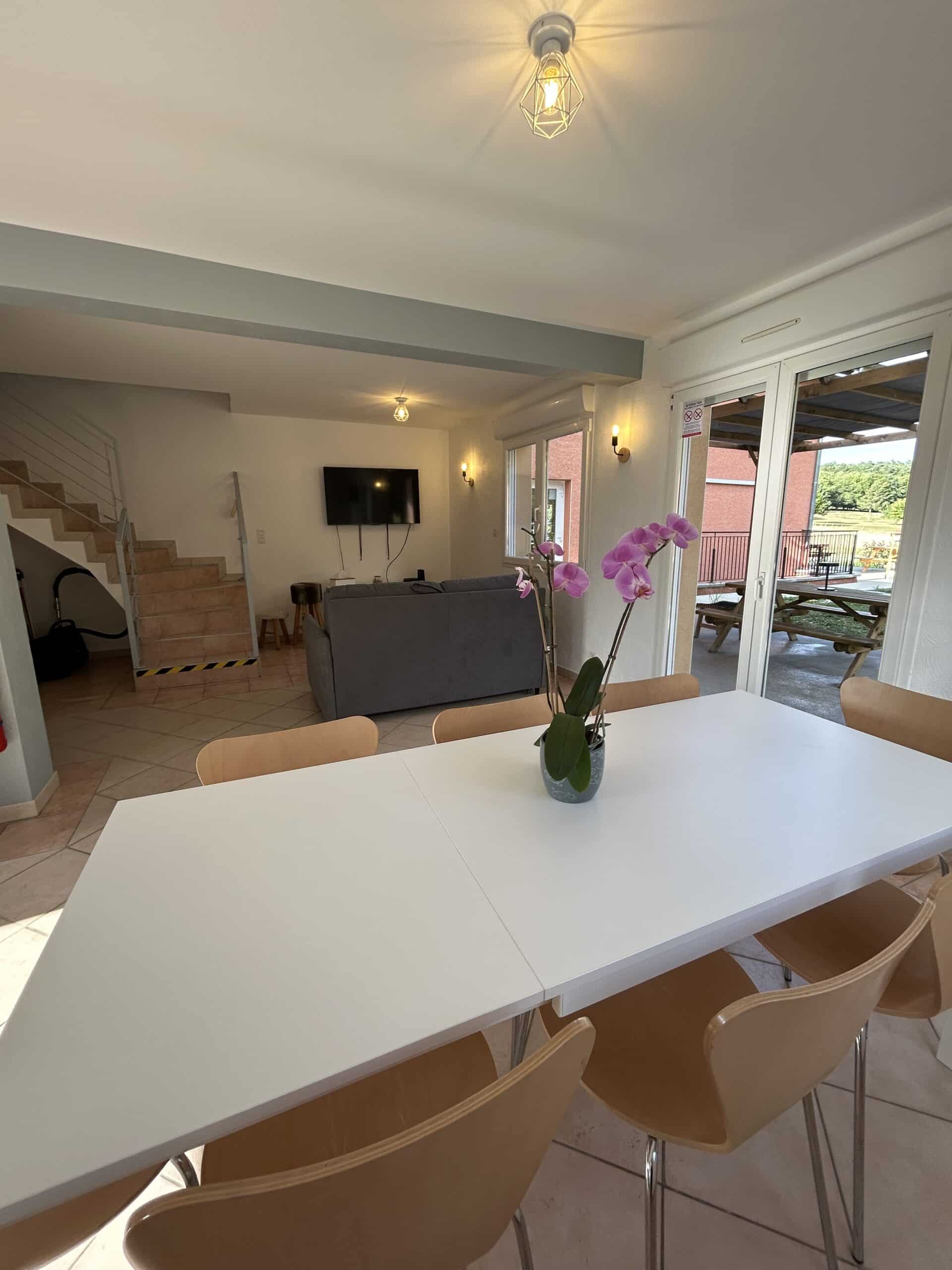 La Maison de Jasmine est un hébergement spacieux et entièrement équipé, parfait pour accueillir jusqu’à 8 personnes. Dotée de 3 chambres et d’une terrasse avec pergola, elle combine le confort moderne et le charme de la campagne.